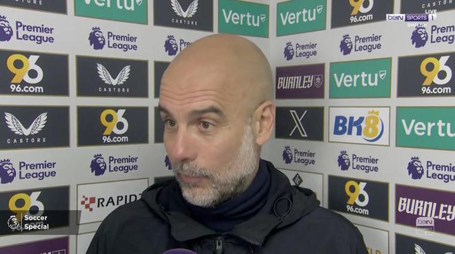 英超第34轮,曼城客场1-0击败伯恩利,登顶积分榜,赛后,曼城主帅瓜迪奥拉接受了拜因体育的采访。