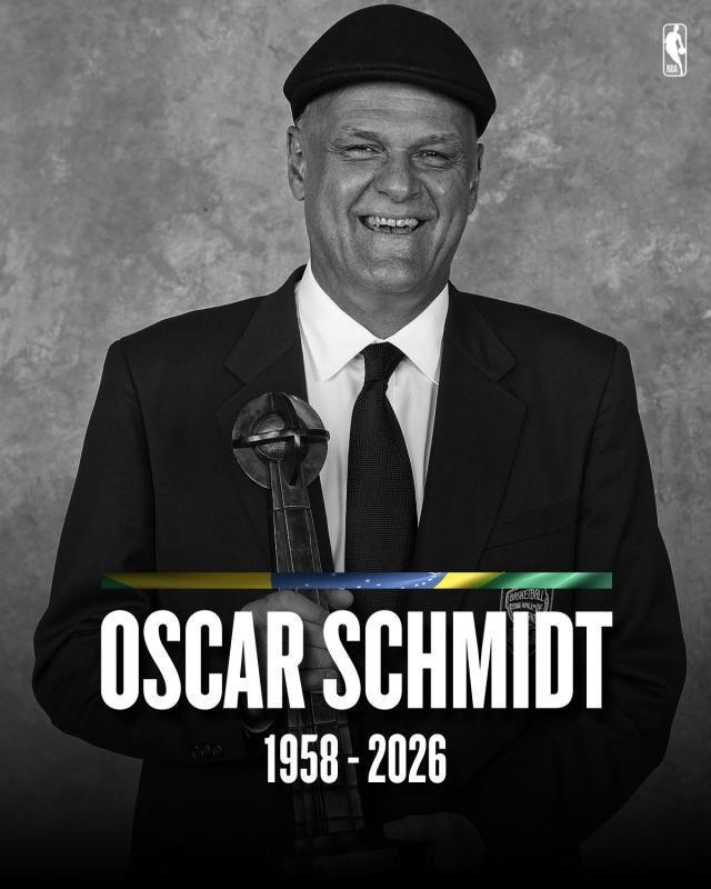 巴西篮球传奇、名人堂成员奥斯卡·施密特逝世,享年68岁。施密特1958年2月16日(当地时间)出生于巴西纳塔尔,身高2米06,司职前锋,在1984年选秀大会第6轮(共10轮)总第131顺位被篮网选中。施密特1974年开启职业生涯,大部分时间都在家乡(巴西)和意大利度过,在意大利他成为了科比的儿时偶像。虽然施密特从未在NBA打过球,但他深受巴西人民爱戴——他为国家队效力了19年,并成为篮球史上最出色的得分手之一。此外,施密特在1987年泛美运动会决赛独得46分,率队历史性战胜美国队,同样令人铭记。施密特于1977年、19岁时首次代表巴西国家队出场,一共出战326场比赛,场均砍下23.6分。施密特参加了五次奥运会和四次世界杯,追平了参赛次数纪录,并且是这两项赛事的历史得分王(奥运会1093分、世界杯906分)。在奥运会历史上单场得分最高的十场比赛中,他独占七席;他还保持着奥运会单场得分纪录(1988年对阵西班牙狂轰55分)和世界杯单场得分纪录(1990年对阵澳大利亚砍下52分)。